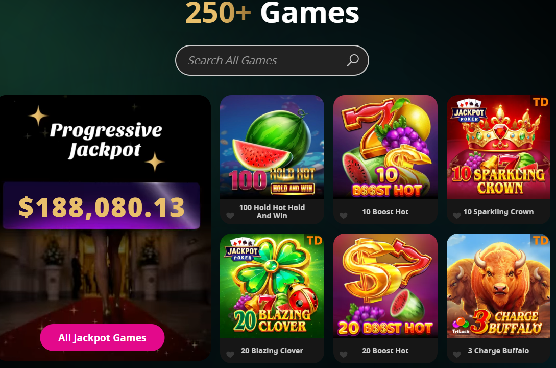 Players can try their luck on progressive jackpot slots including popular titles such as Fortune Gems, 3Charge Buffalo, 10 Sparkling Crown, 20 Blazing Clover, and Harvest of Riches. These slots offer the chance to win life-changing payouts while enjoying engaging graphics and exciting gameplay.